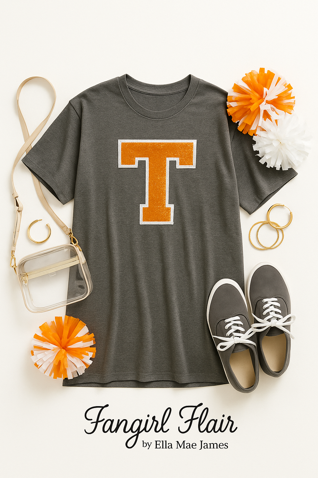 Step into game day with confidence in the Big Orange Glam Dress. Designed with a bold sequin “T” on a relaxed oversized fit, this dress is made for Tennessee fans who love to stand out. Perfect for tailgates, stadium days, or cheering from home, it blends comfort with sparkle. Style it with boots or sneakers for the ultimate UT gameday look.