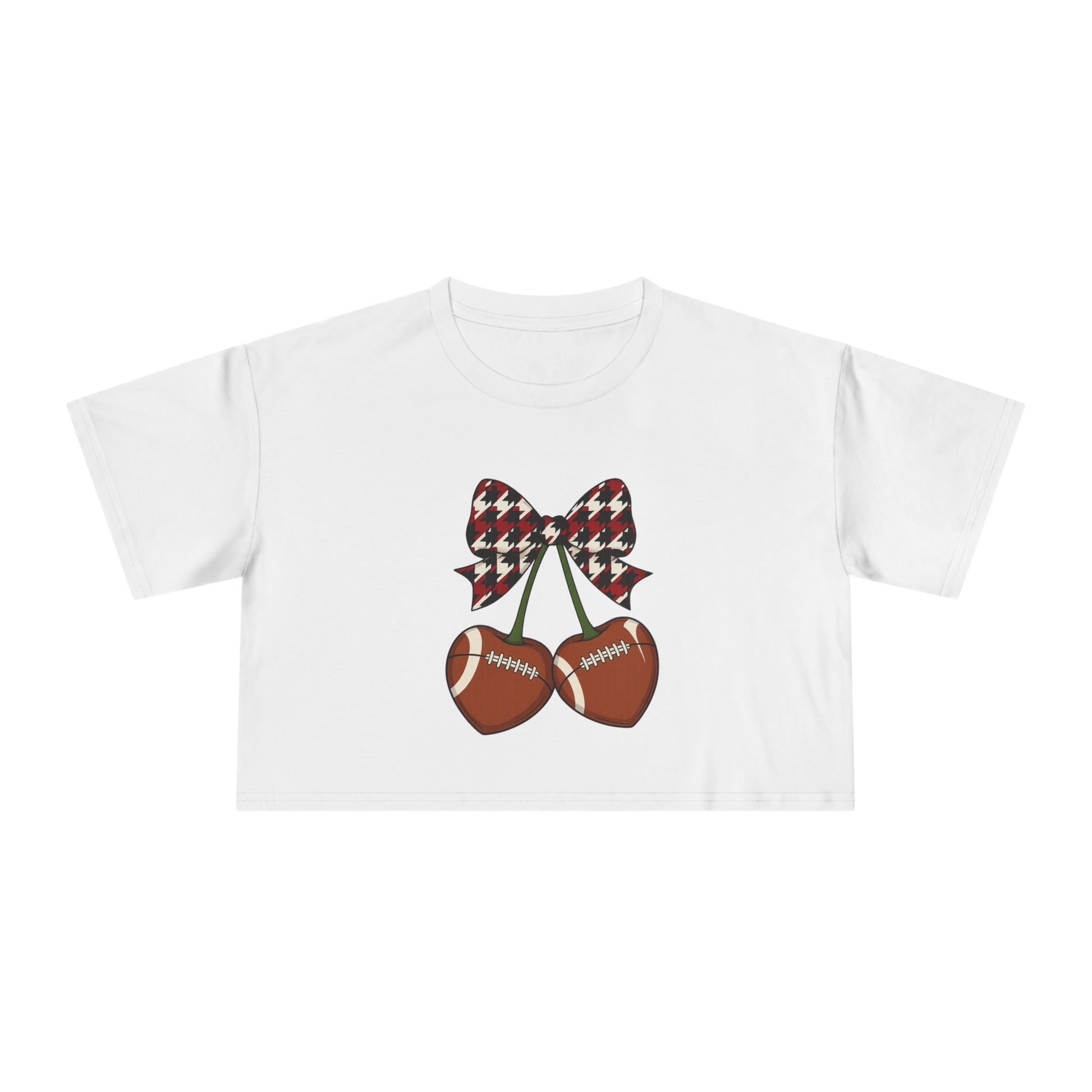 Built for Saturdays and sweet for the win — this cropped tee is all Bama with a cherry on top. Featuring football cherries tied with a crimson and white houndstooth bow, it’s made for die-hards who never miss a game day. Roll Tide and rock this look from the quad to kickoff