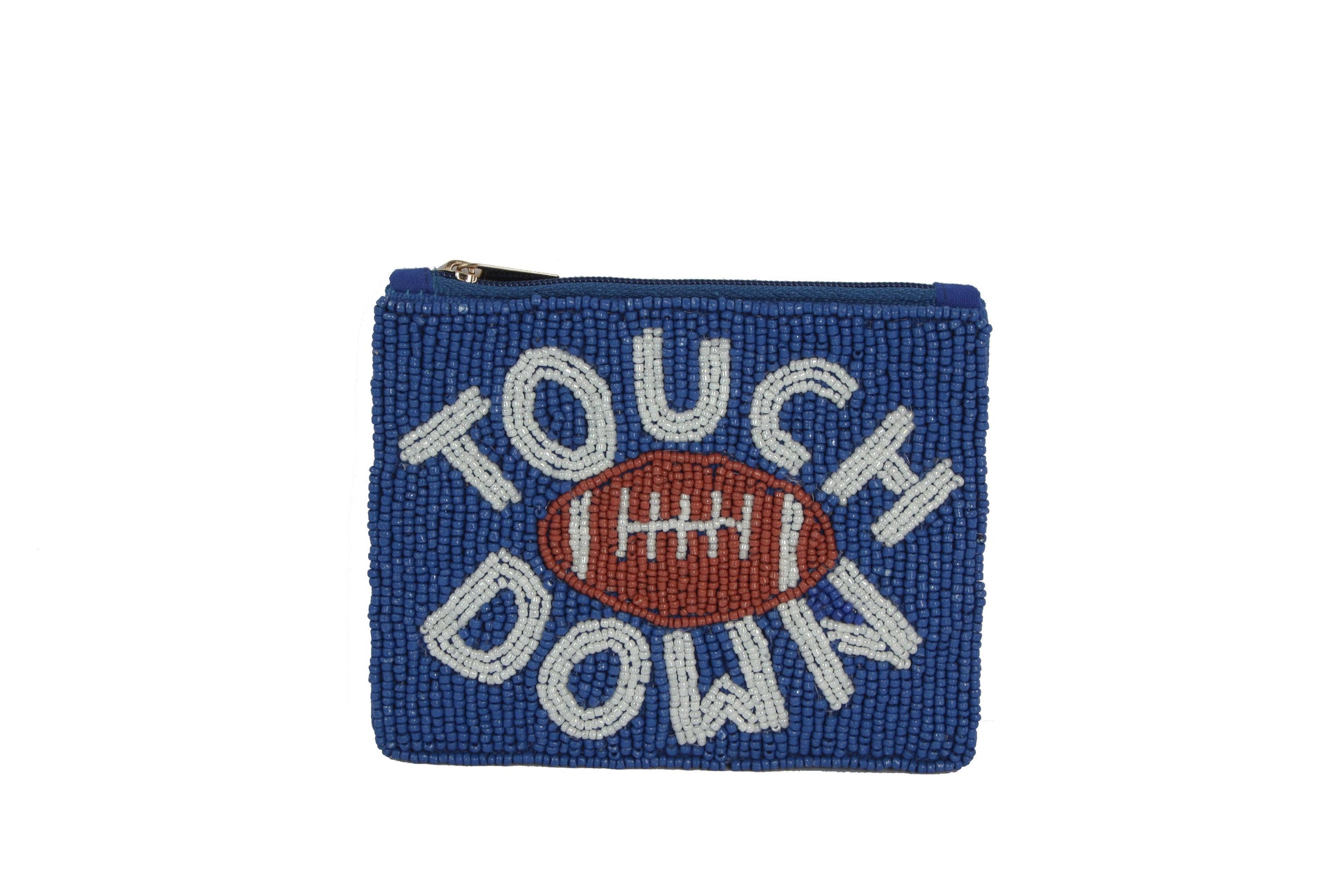 Ladies Fully Beaded Blue TOUCH DOWN Theme Coin Purse