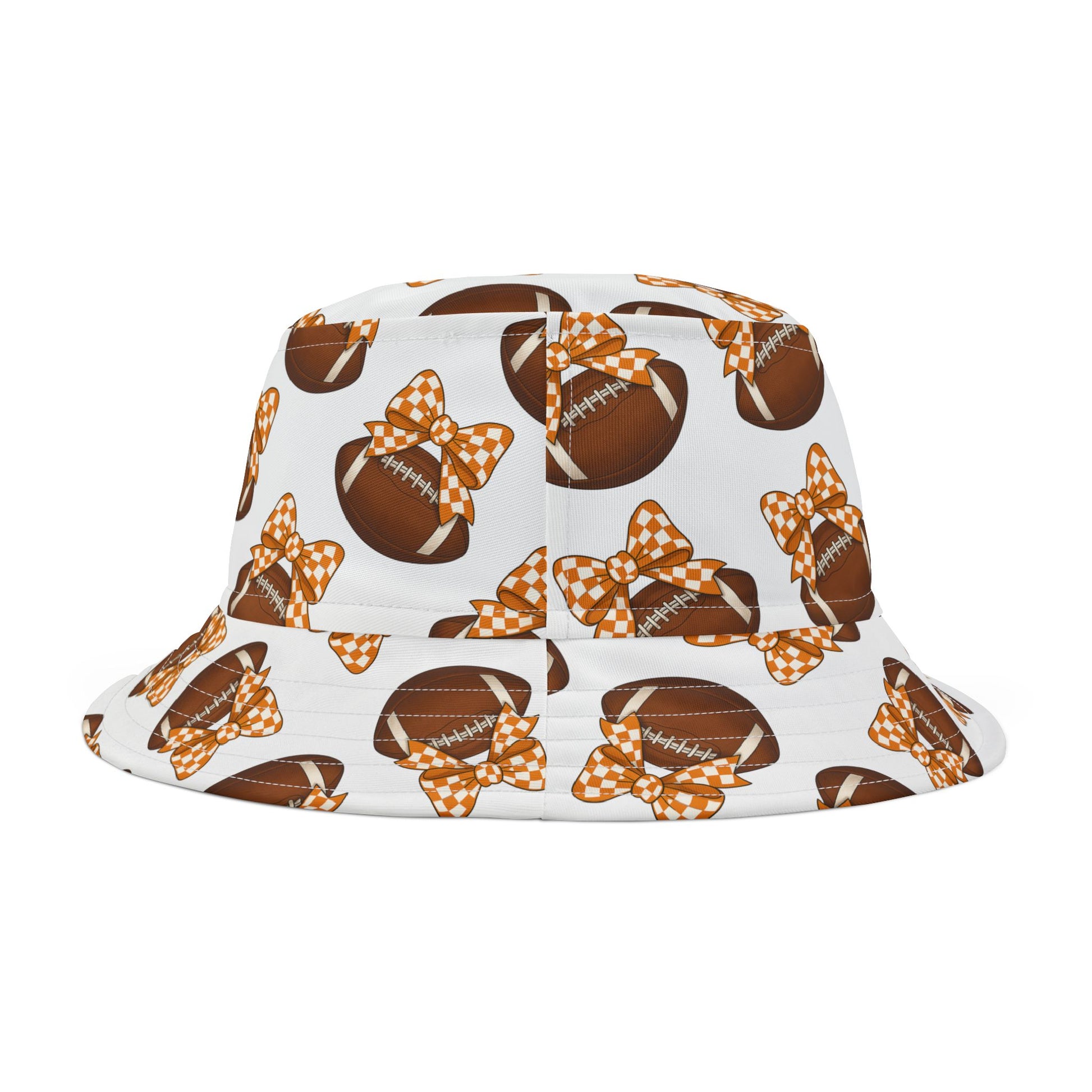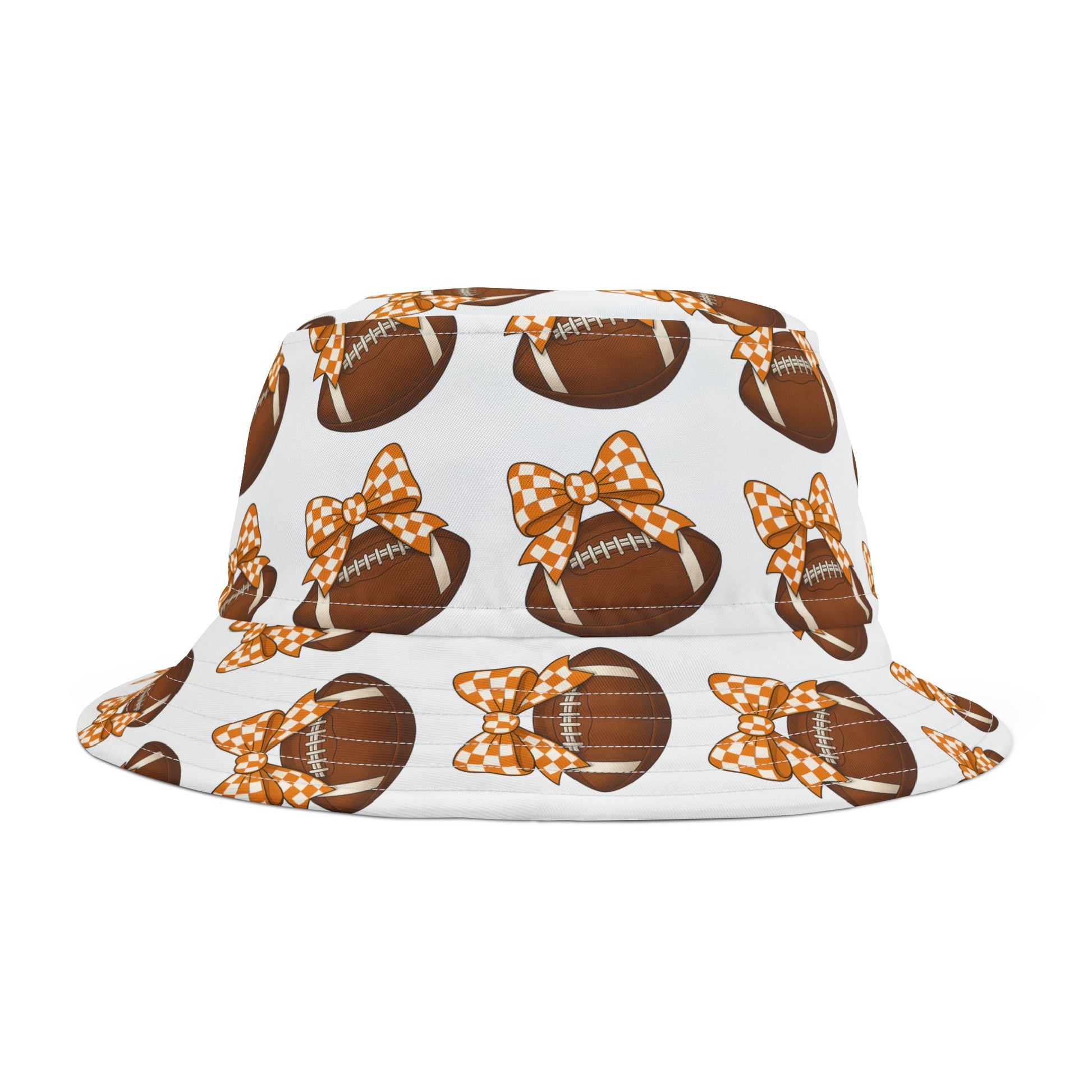 Game day just got cuter. The Vol Babe Bucket features our signature gingham bow + football cherry print all over, serving up the perfect combo of sweet and sporty. Lightweight, breathable, and made to shade you from that Tennessee sun — this hat is tailgate-ready, selfie-approved, and screaming with Vol flair.