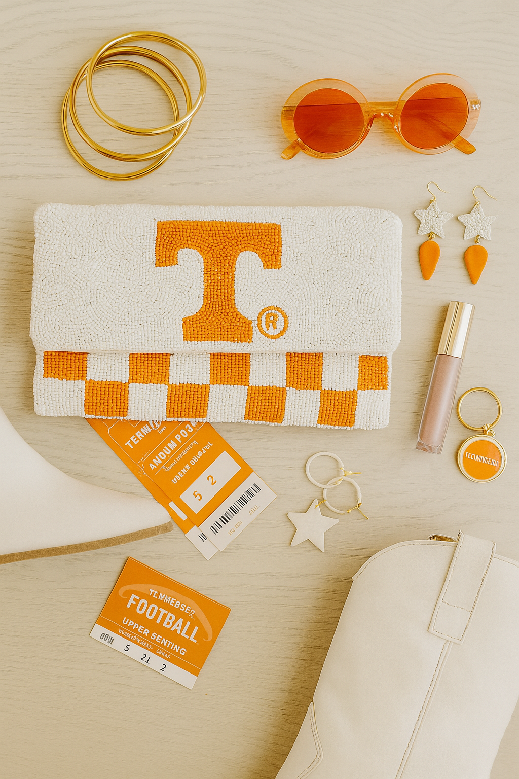A must-have for every Vols girl, this beaded clutch brings the checkerboard spirit straight to your fingertips. Perfect for game days, girls' nights, or a weekend in Knoxville, it’s the bold accessory that shows your Tennessee pride in style.